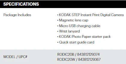 Capture the fun and spontaneity of a classic instant camera in an affordable, compact package. The KODAK STEP Instant Print Digital Camera is easy to operate: simply raise the viewfinder to power it on; choose a photo mode; then point, shoot, and wait for your photos to print. The wrist lanyard and magnetic lens cap make it a must-have on outings to instantly capture those picture-perfect moments.